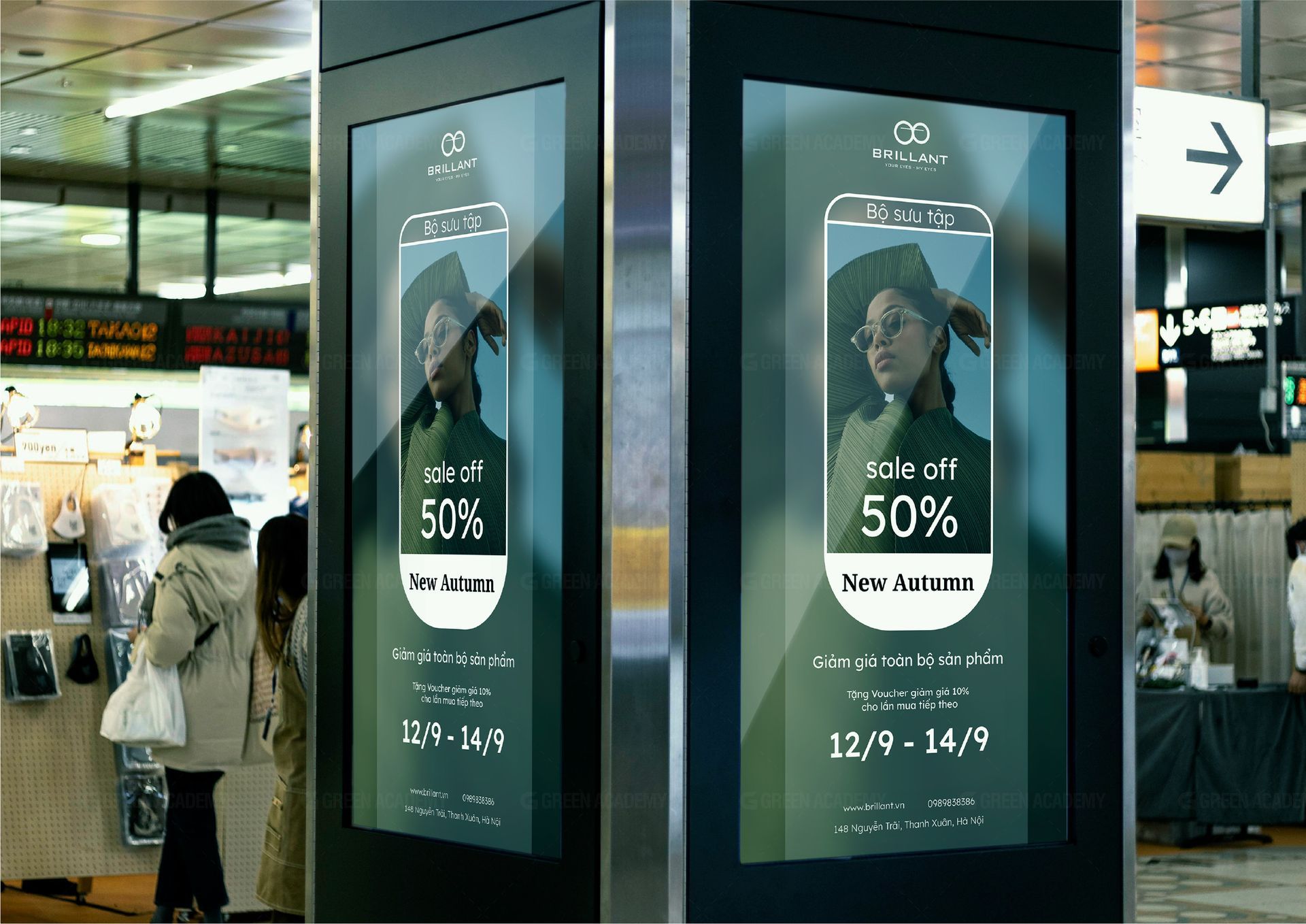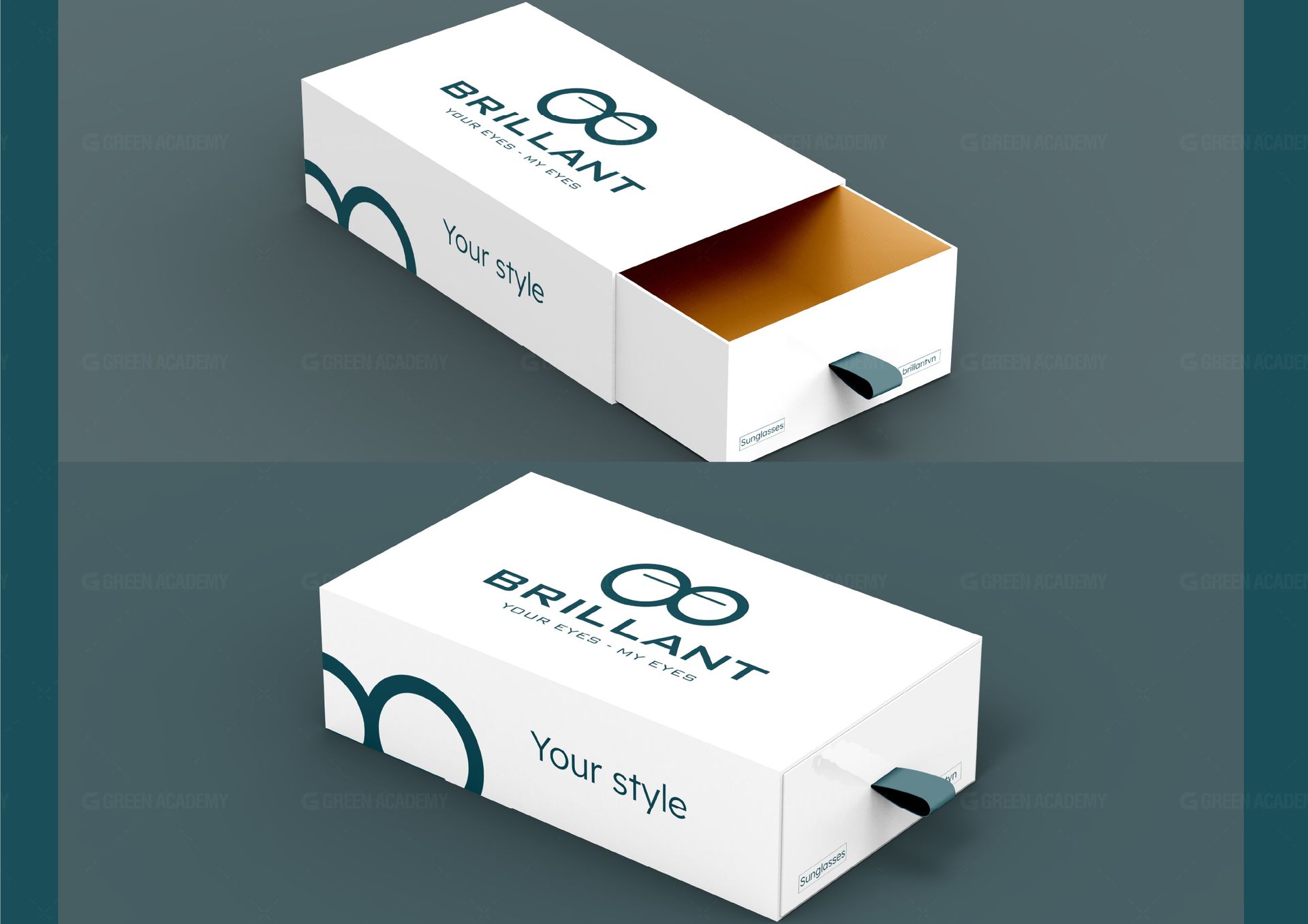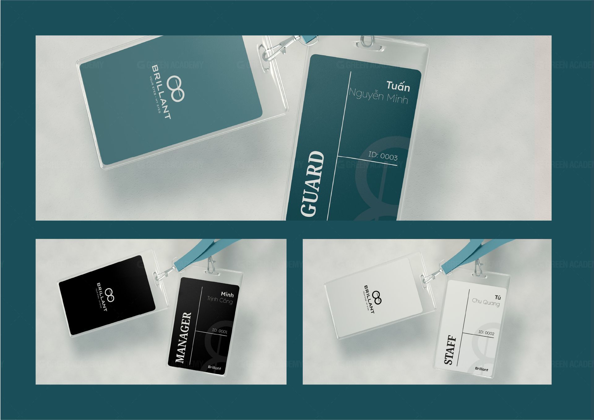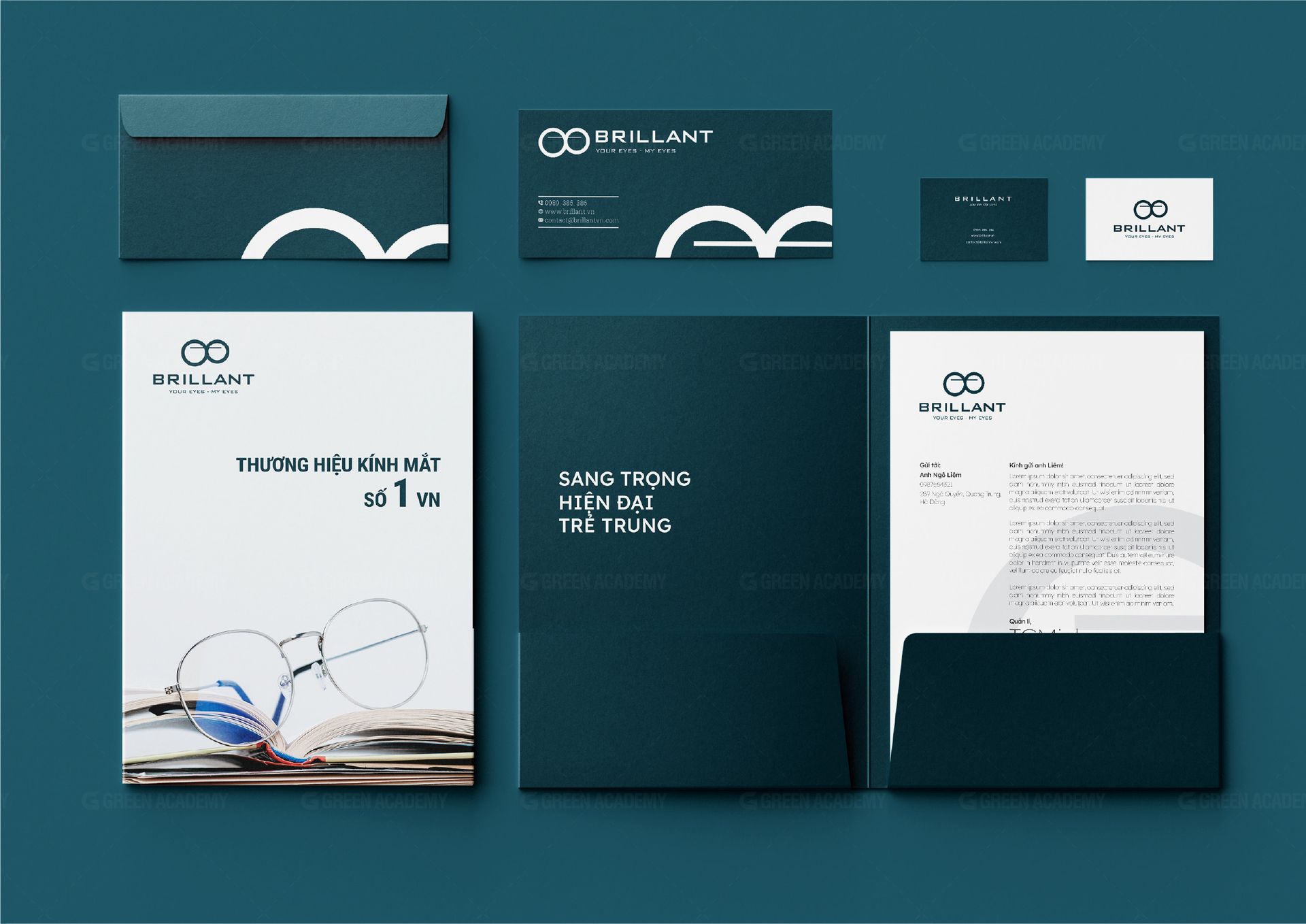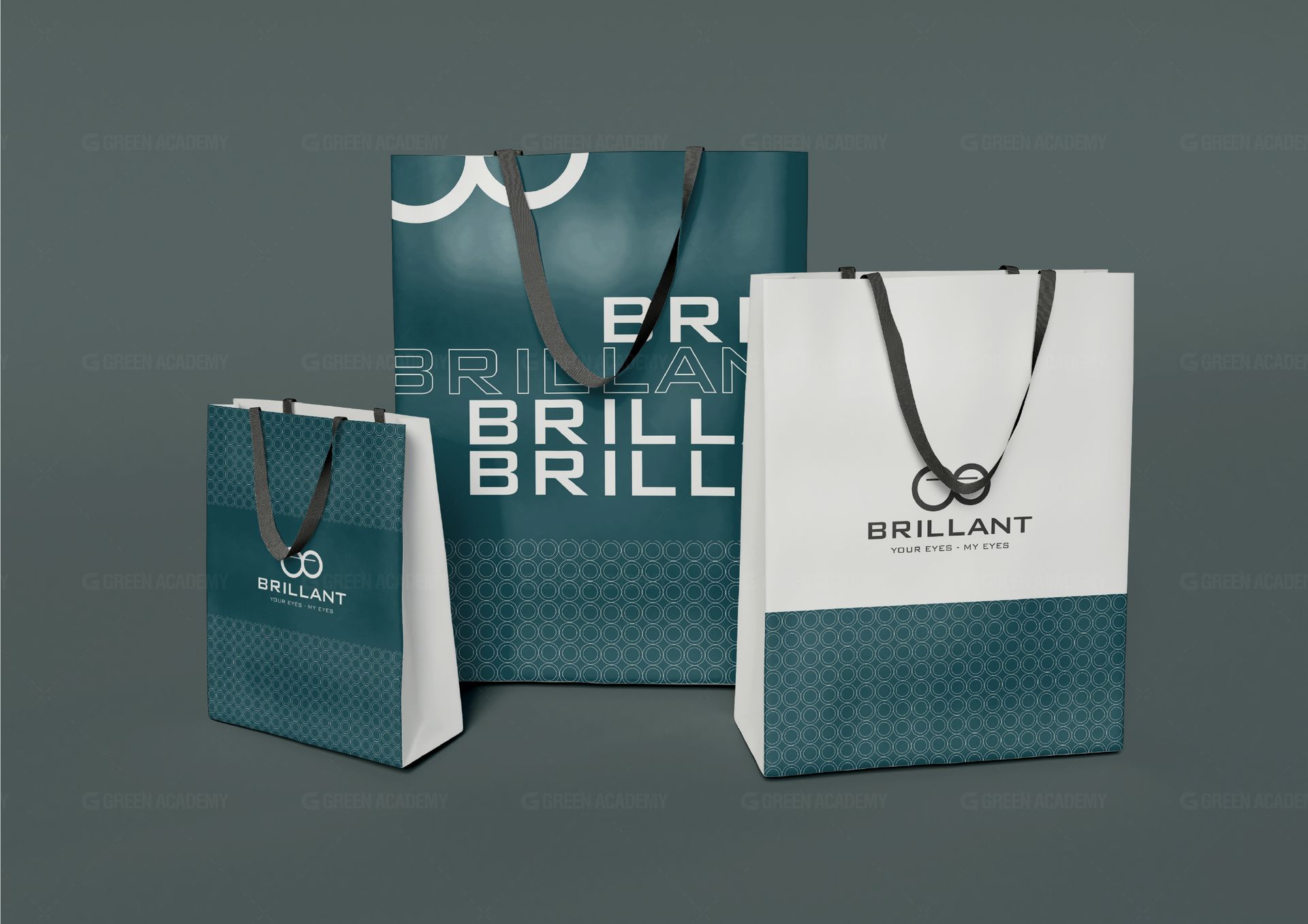 Logo: Được lấy cảm hứng từ những chiếc kính, kích thước hai hình tròn khác nhau thể hiện sự phá cách trong sản phẩm của Brillant. Logo bao gồm biểu tượng và phần chữ, phần chữ có tên và slogan của thương hiệu, bố cục logo ngang dọc giúp việc sử dụng logo được linh hoạt hơn.