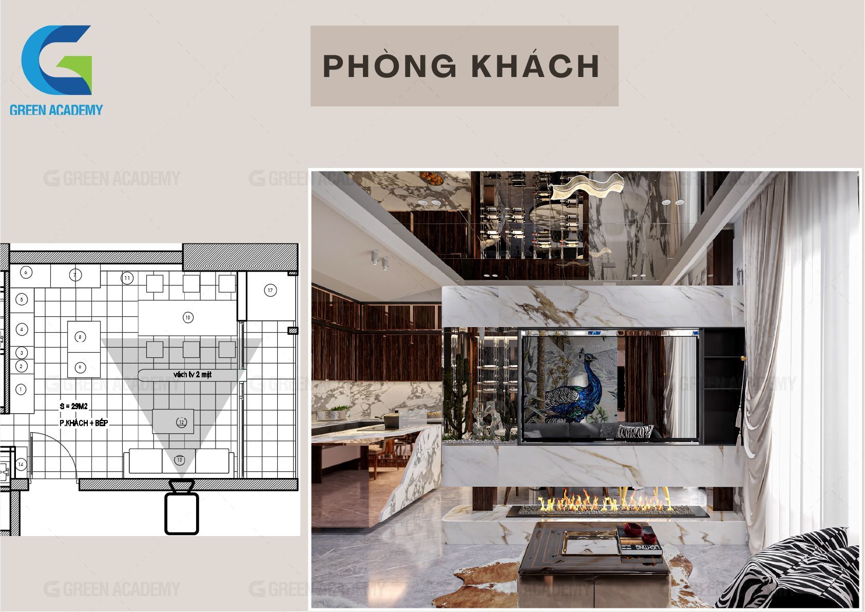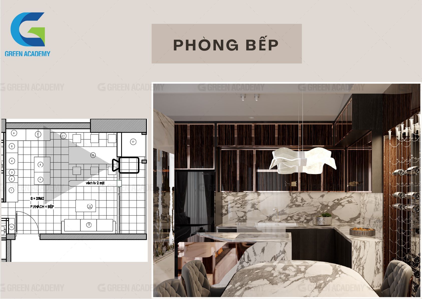 Cùng xem qua đồ án của Đức Huy sau 8 tháng học Thiết kế nội thất tại Green Academy nhé.