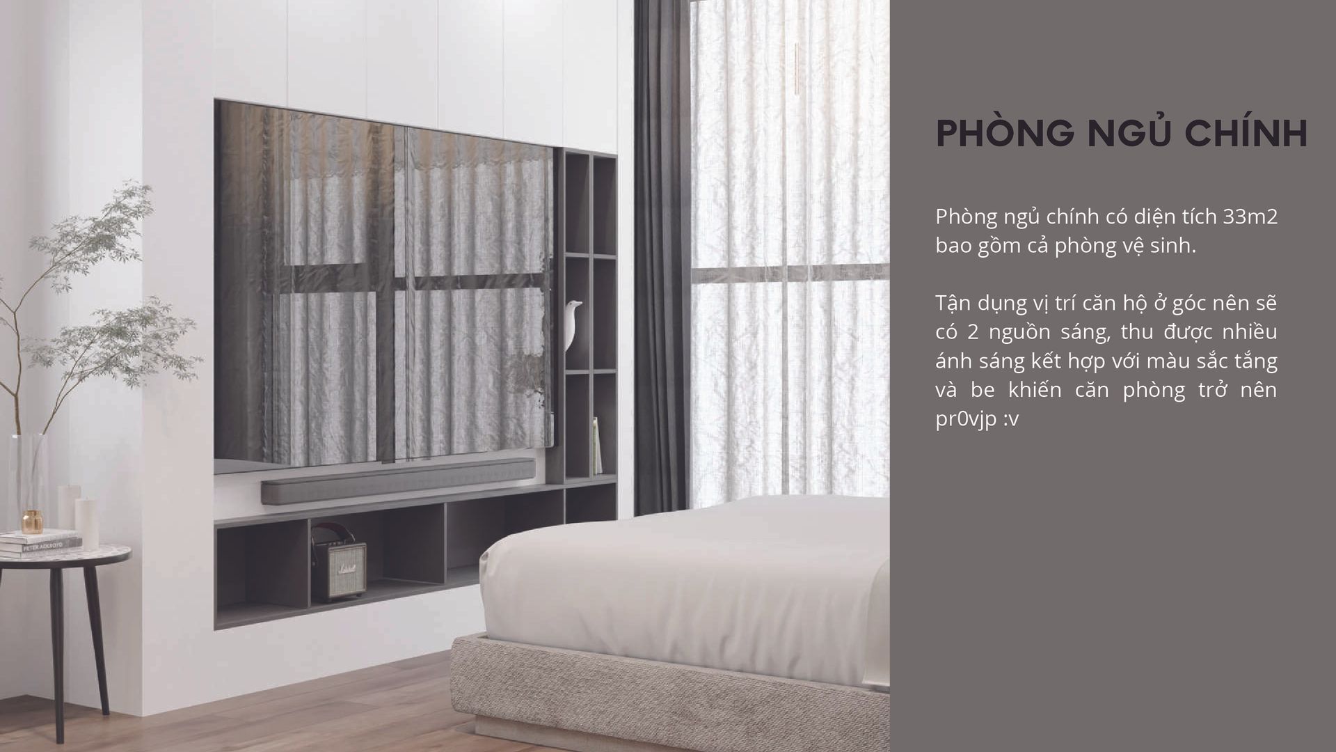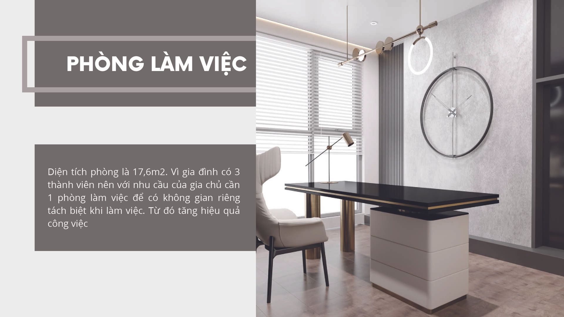- Căn hộ thuộc khu đô thị mới Himlam Greenpark thành phố Bắc Ninh với tổng diện tích 112m2, không gian sinh hoạt chung gồm phòng khách, phòng bếp và 1 phòng vệ sinh chung. 2 phòng ngủ trong đó phòng ngủ chính có phòng vệ sinh riêng biệt và 1 phòng làm việc. Thiết kế cho gia đình gồm 3 người: 2 vợ chồng trung niên 37 tuổi và một con gái 15 tuổi.