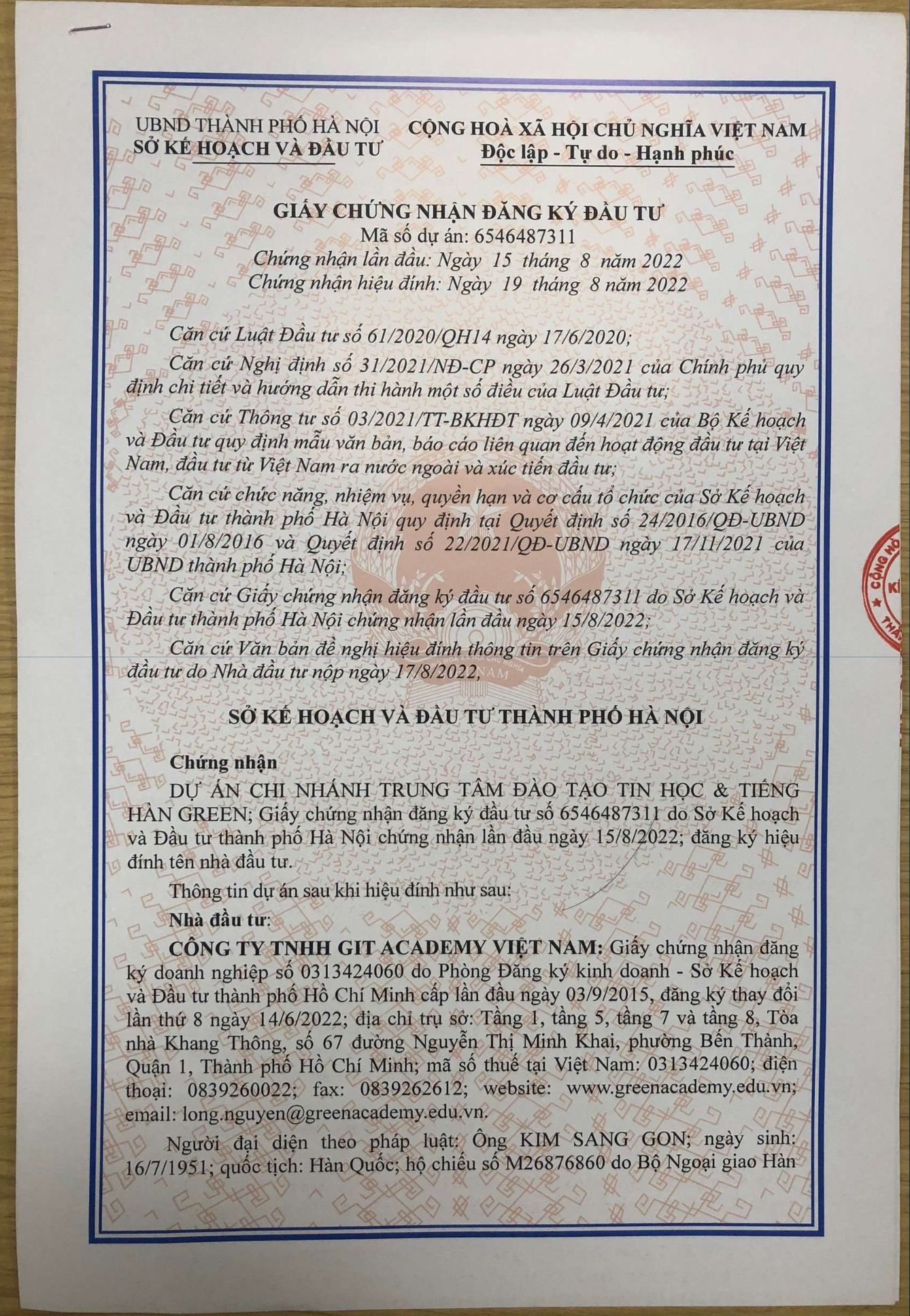 đăng ký đầu tư