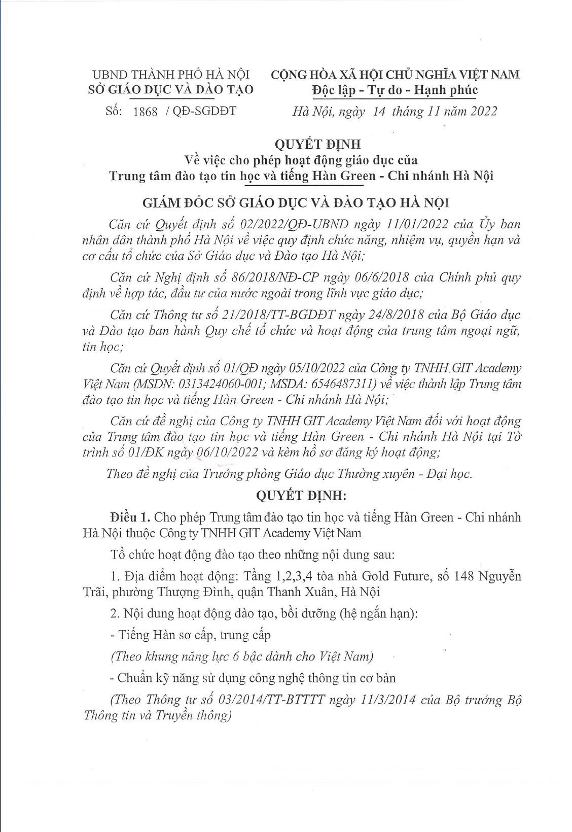 gIẤY PHÉP HOẠT ĐỘNG